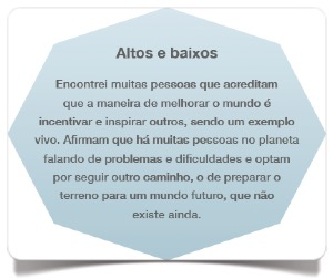— Há pessoas que parecem não ter altos e baixos em suas vidas. Você acha isso possível?