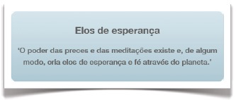 — O poder das preces e das meditações é real. Elas criam elos de esperança e fé que se espalham pelo planeta. Trazem luz e inspiram um mundo melhor. Por isso, penso que atacar a fé ou a crença de alguém é uma forma de violência. Não há nada mais devastador do que a ausência de esperança. E a fé, de algum modo, a alimenta.