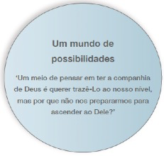 — Muitas vezes, ao pensar em ter a companhia de Deus, tentamos trazê-Lo ao nosso nível. Mas por que não nos prepararmos para ascender ao Dele?