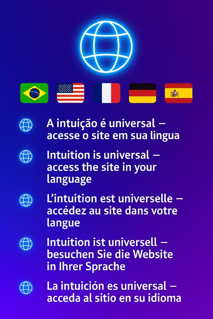 Select a flag — INTUICAO.COM instantly speaks English, French, German, or Spanish.